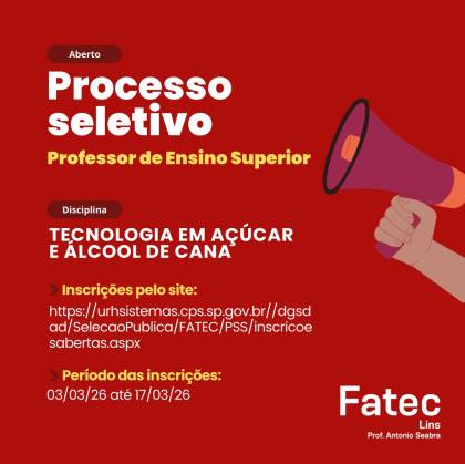 O Coordenador da FACULDADE DE TECNOLOGIA PROFESSOR ANTONIO SEABRA, nos termos da Deliberação Ceeteps nº 17, de 16 de julho de 2015, torna pública a abertura de inscrições e a realização de Processo Seletivo Simplificado, para a função de Professor de Ensino Superior, objetivando a admissão temporária para atender a necessidade de excepcional interesse público, mediante as condições estabelecidas nas Instruções Especiais, contidas no presente edital.