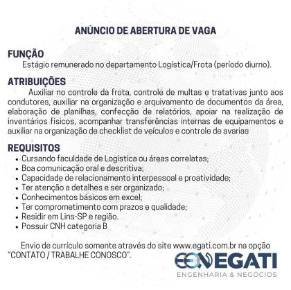 Estágio remunerado no departamento de Logística/Frota (período diurno)